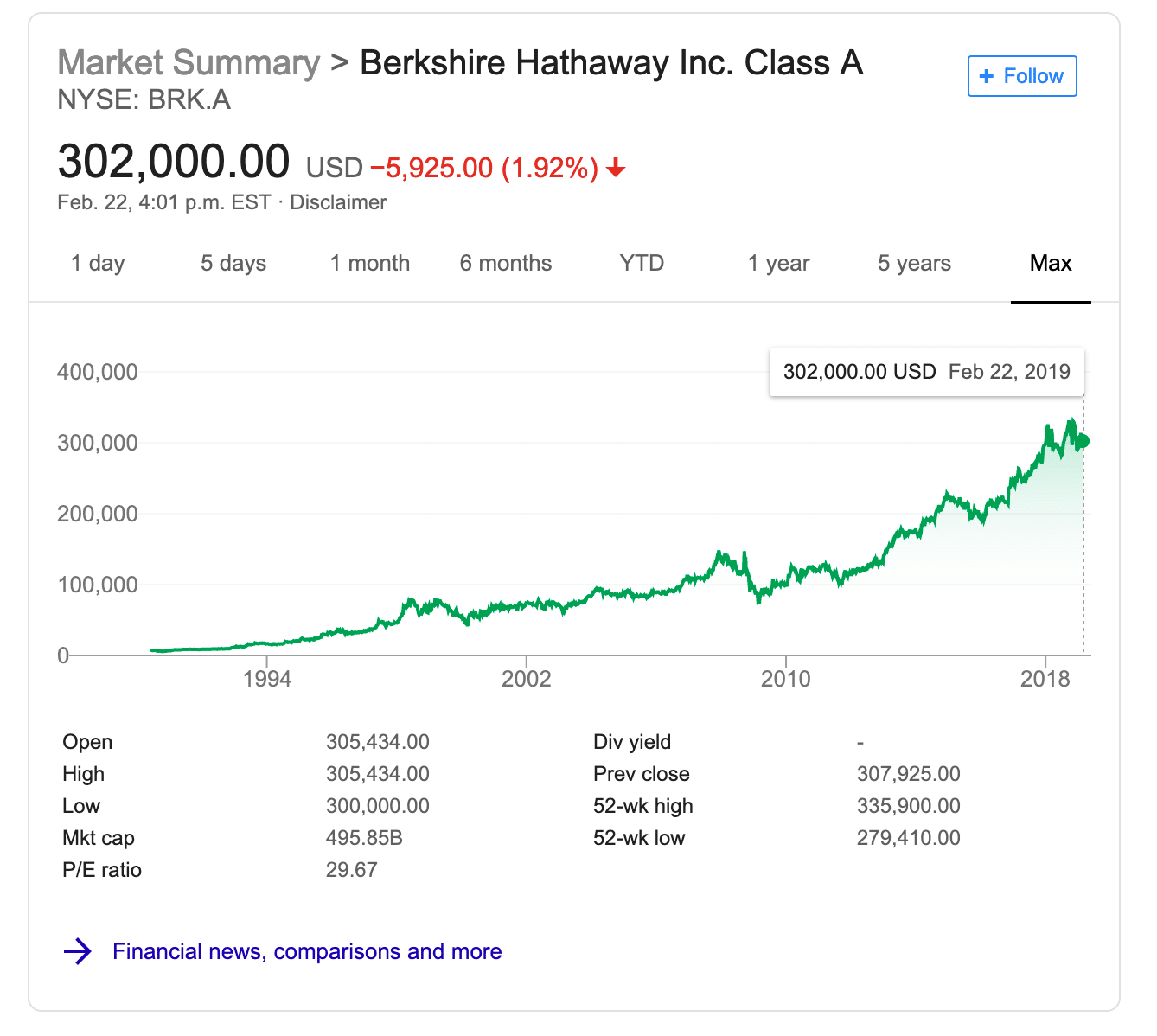 Stock should be priced so that stock returns >= business returns, always including a margin for error in forward-looking estimates.