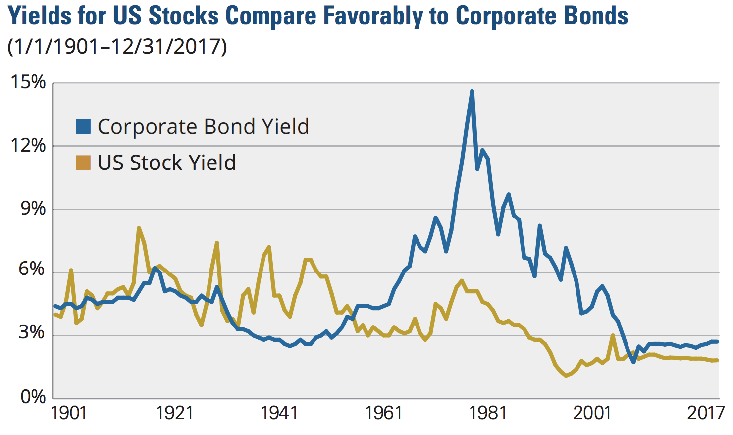 Either way you look at it, stocks are much more attractive than bonds in today’s market environment. The financial world has changed a lot over the last 40 years. As you can see, long gone are the days of double-digit bond yields. Many quality stocks now yield significantly more than corporate bonds.